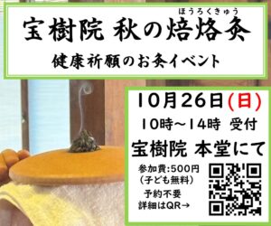 <概要> 令和7年10月26日(日)は、宝樹院のお灸イベントとマルシェが同時開催されます。マルシェ(市場)は、手作り品の販売とキッチンカーの出店が多数、宝樹院とドッグラン(徒歩3分)の2か所に出店されます。それぞれの概要 […]