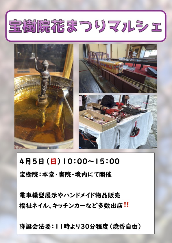お釈迦様のご生誕をお祝いし、宝樹院でマルシェを開催します。